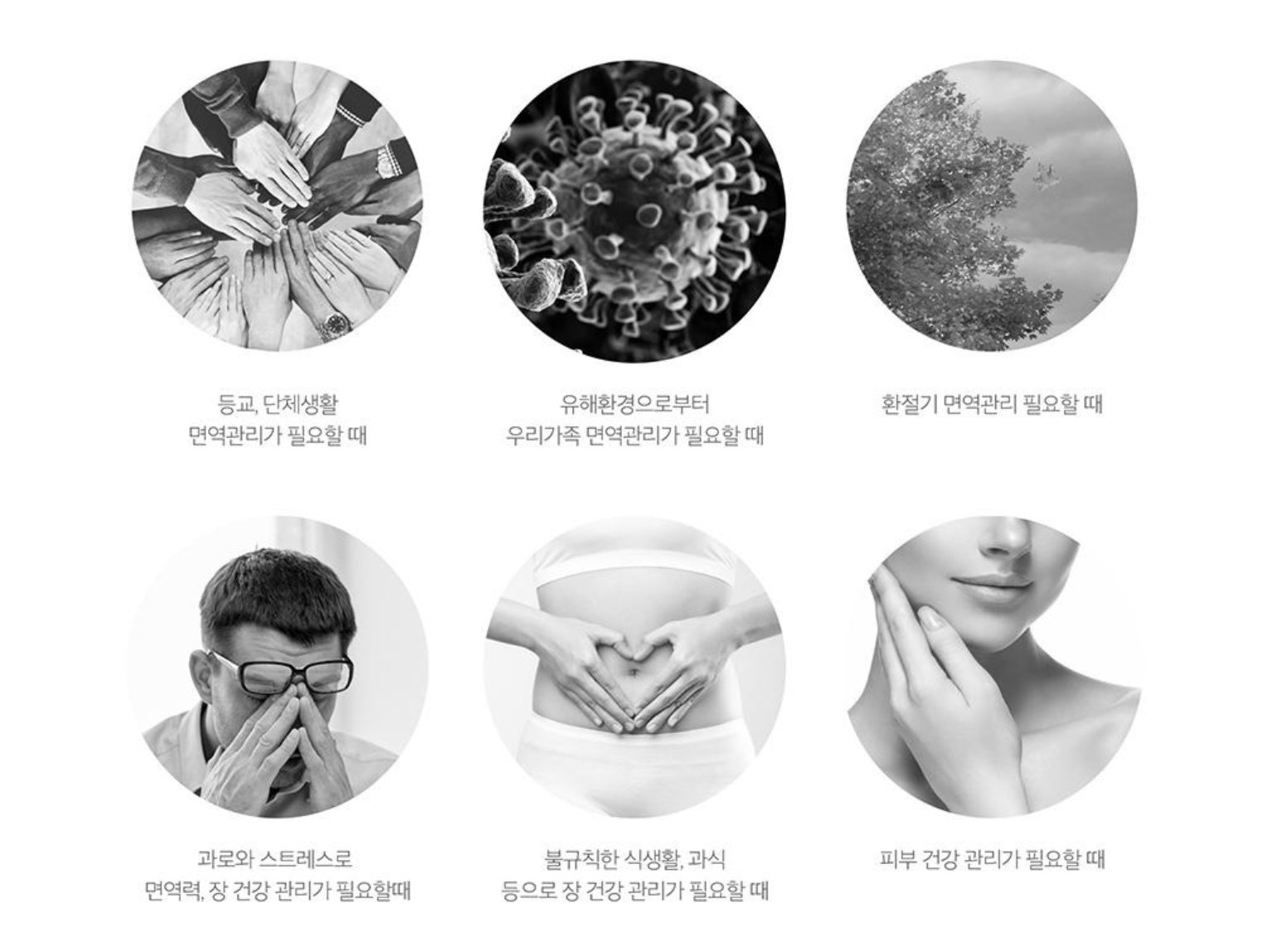 저희는 특히 과로와 스트레스 상황에서 면역 관리와 피부 건강, 장 건강 관리에 관심을 갖고 있구요.