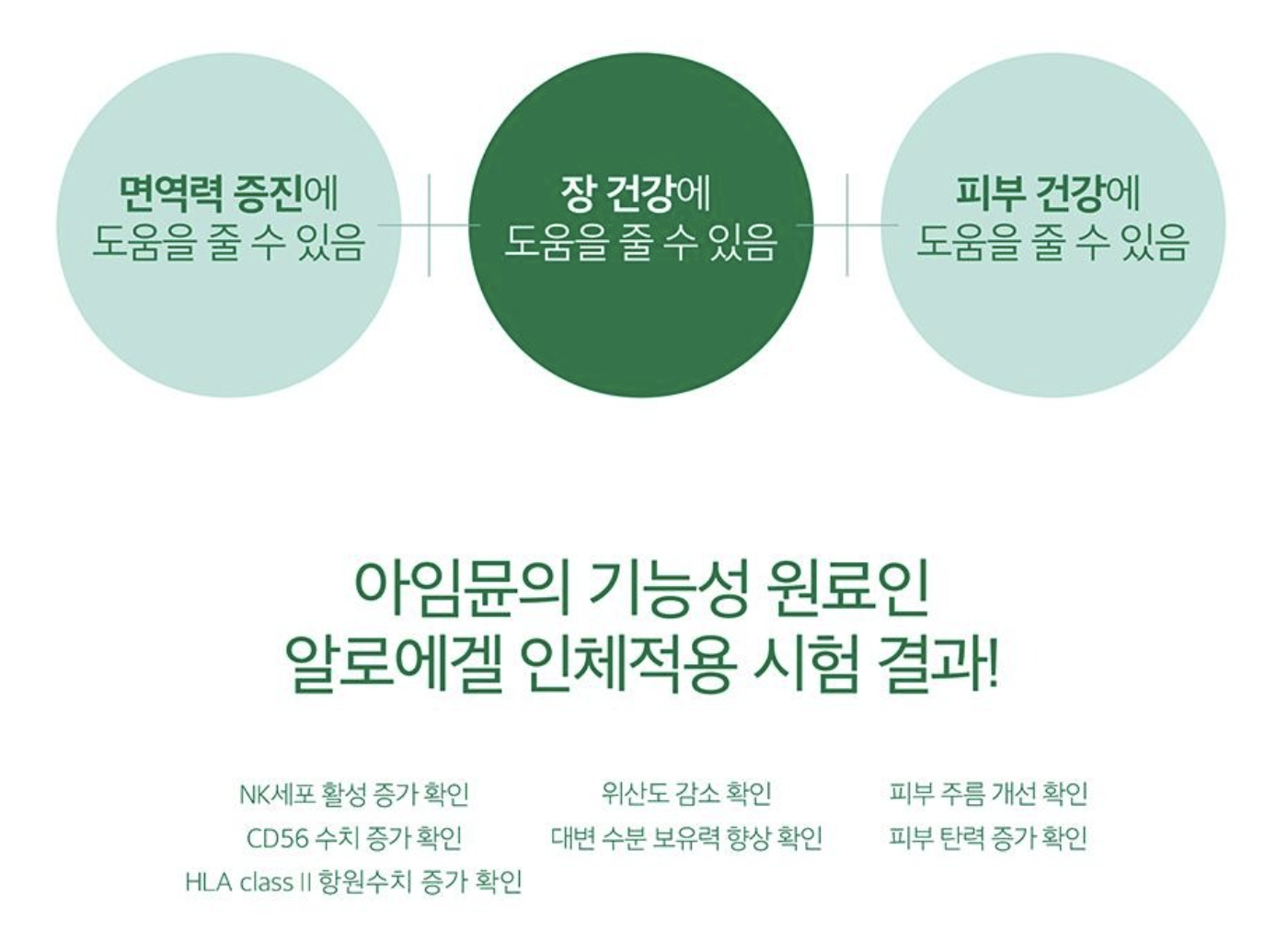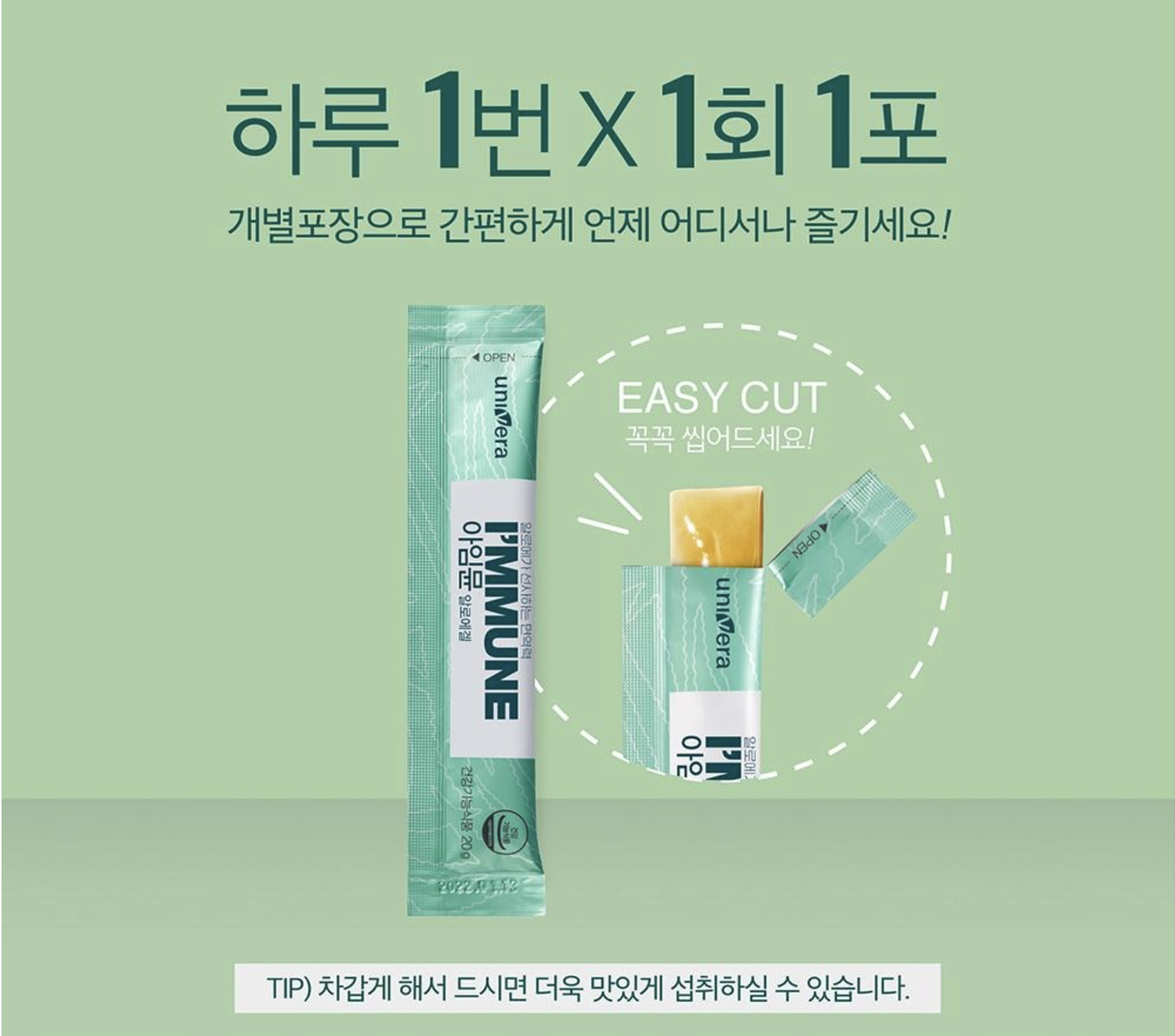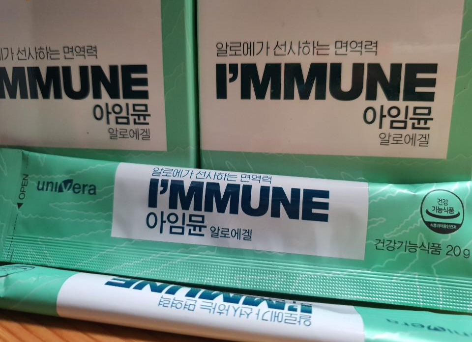 첫인상은 이름이 면역(immune)에서 따와서 지었나보다, 알로에 색깔 같은 포장인가보다 정도였어요.