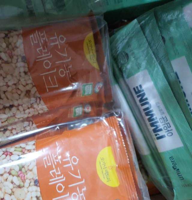 한국 반찬 말고도 김, 라면, 과자, 국, 즉석조리식품, 각종 통조림, 약, 건강보조식품, 책, 연고 등등을 보내주시는데요,