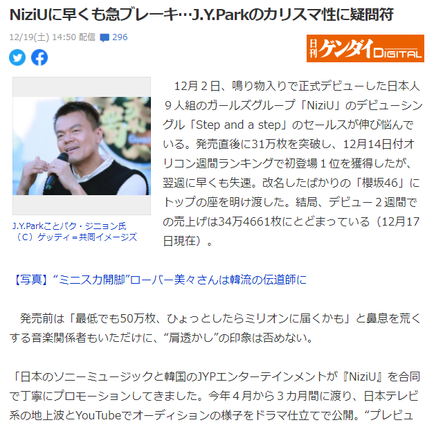 12월 2일 정식 데뷔한 9인조 걸그룹 니쥬의 데뷔 싱글 「Step and a step」 판매량이 주춤하고 있습니다.