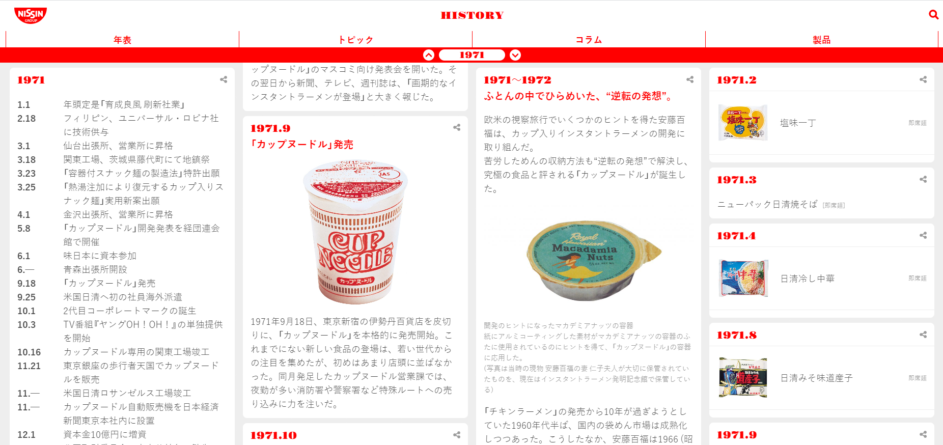 닛신은 1971년 세계 최초로 컵라면을 만든 회사입니다.