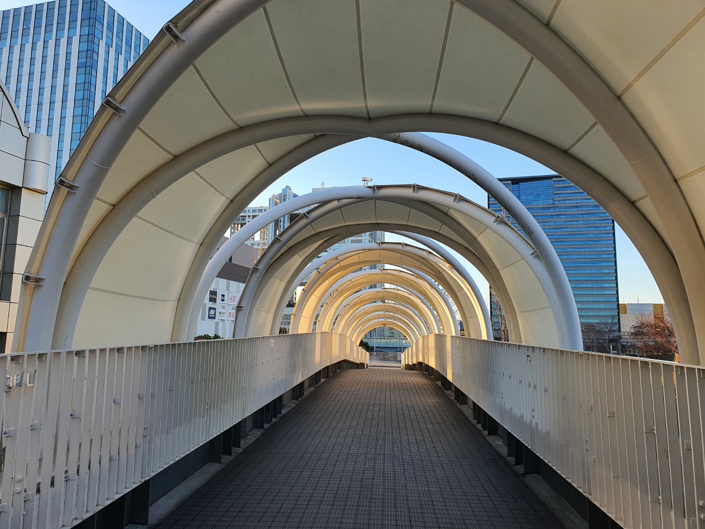 도쿄 텔레포트 브릿지는 도로 위로 각 건물들을 연결하면서 이어진 길고 큰 육교 형식 다리에요.
