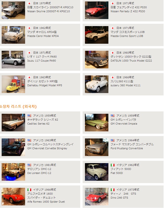 자세한 전시 차량 정보는 홈페이지에 나와있는 리스트를 참고해주세요.