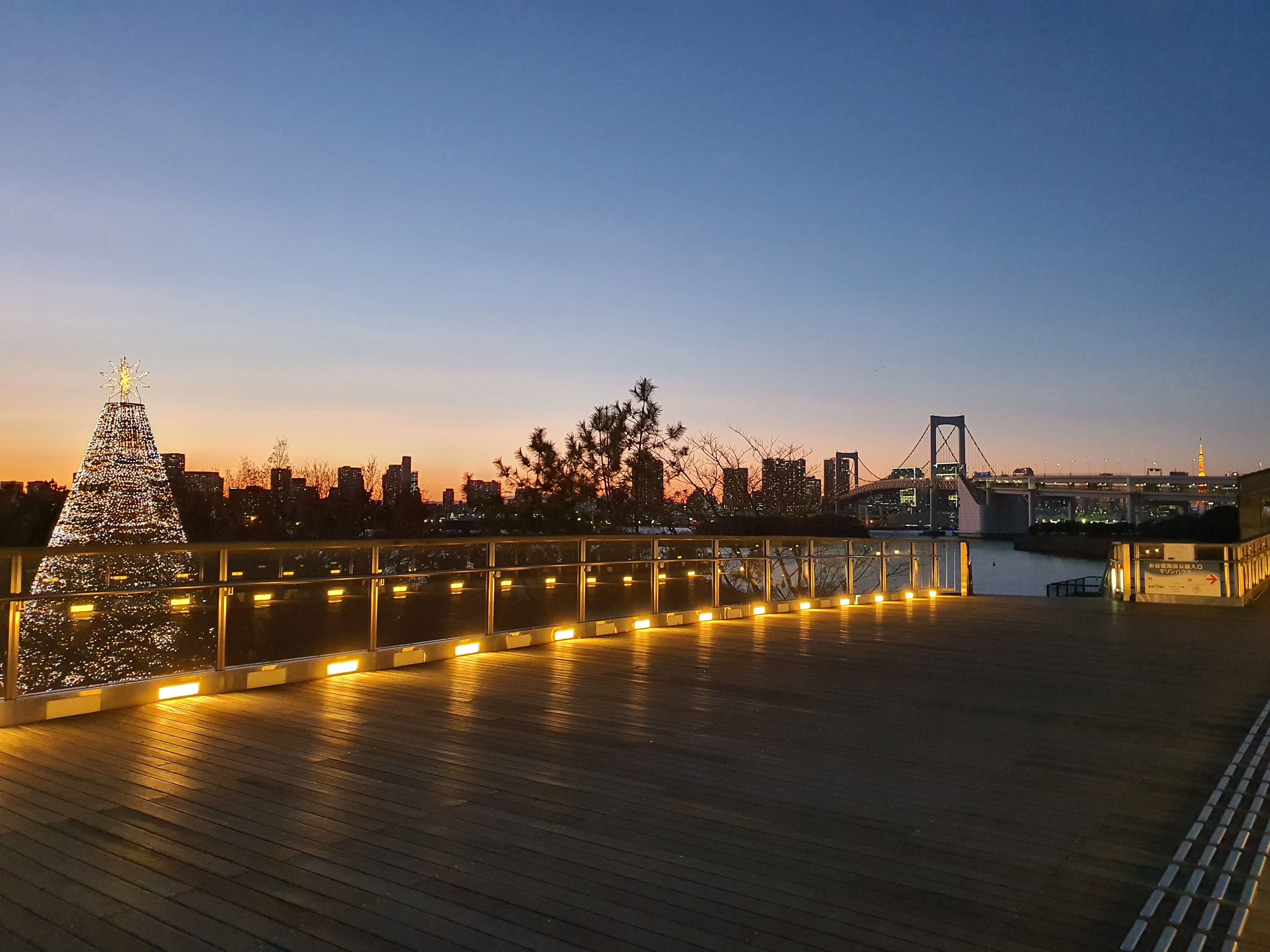 육교 위에서 도쿄타워, 레인보우브릿지와 트리를 함께 담아보았습니다.